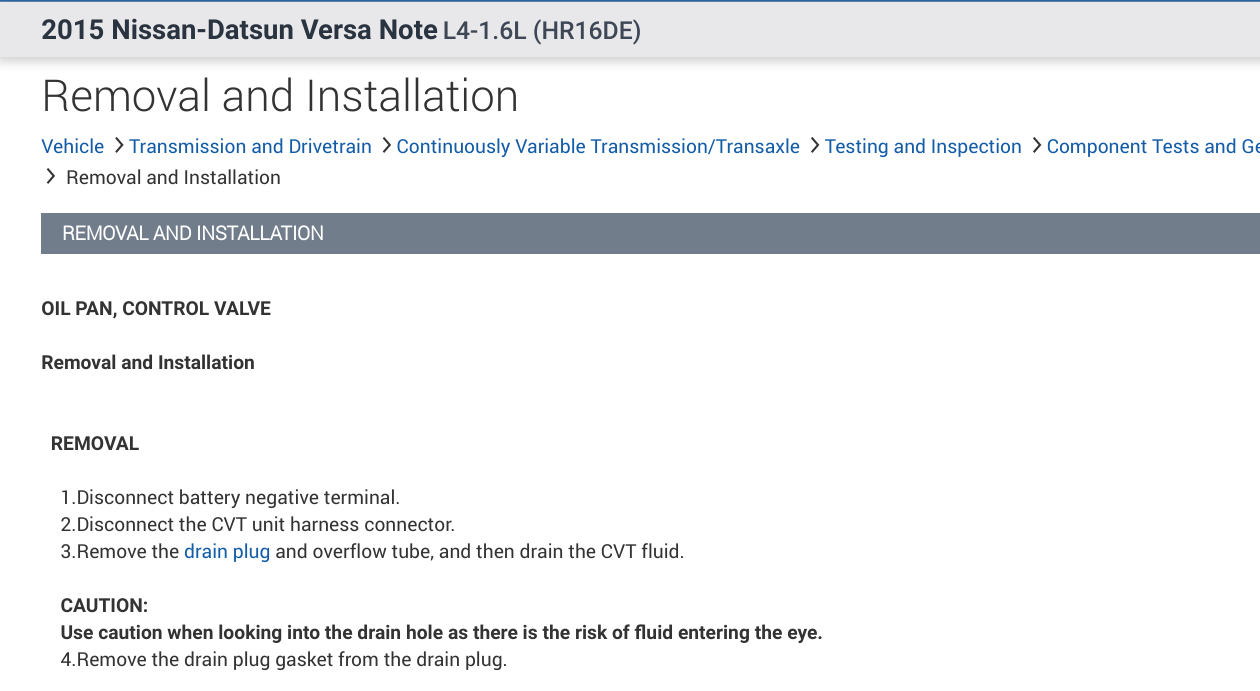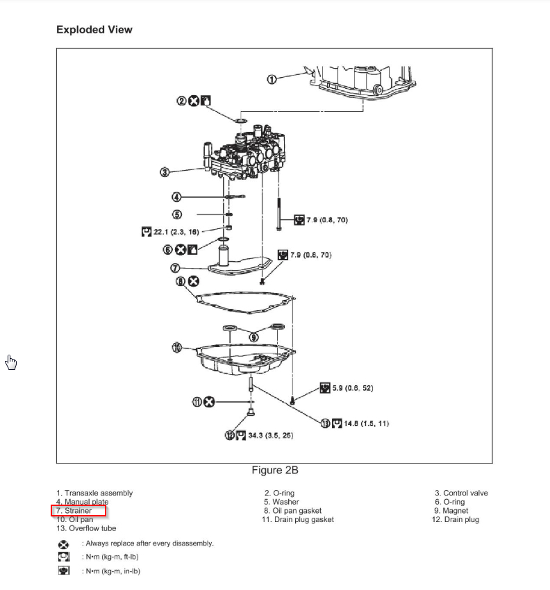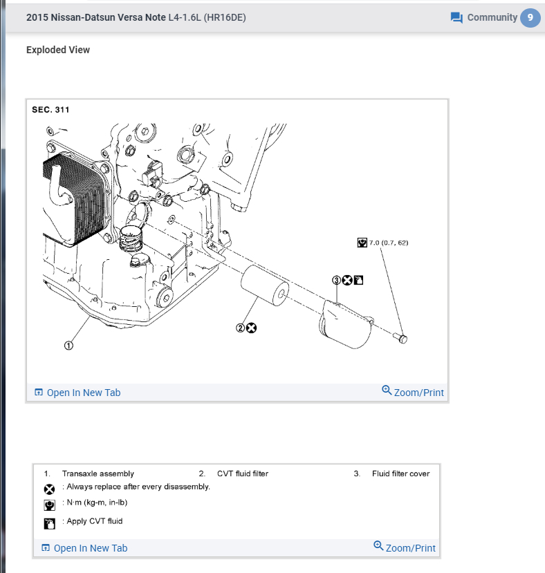 I am getting ready to do a CVT fluid change on my vehicle listed avoce Versa Note and was curious if the CVT fluid strainer is located directly underneath the drain pan? It’s part # 31728-3XX0A I’m trying to find the location. I plan on also swapping the filter on the side behind the drivers wheel fascia, part # 31726-28X0A. I wanted to do a full change of the filters because it’s almost 100,000 miles with hard driving.