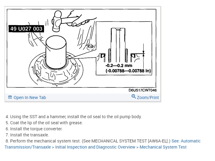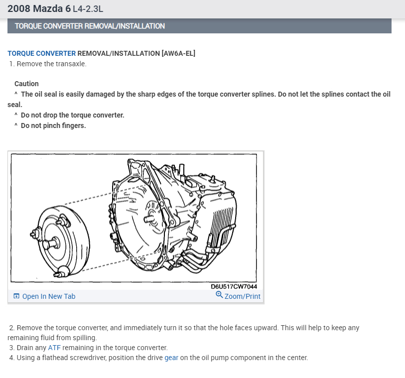 Okay, I understand that there is the rubber plug missing that covers that hole, but my question is When removing a transmission at the point of needed to access the torque converter bolts in the bellhousing "There should be no fluid coming from where you access each nut, correct?" So how many quarts does it take from completely empty in order for it to register and go into gear? Which seal could it be if it was coming from that hole?
