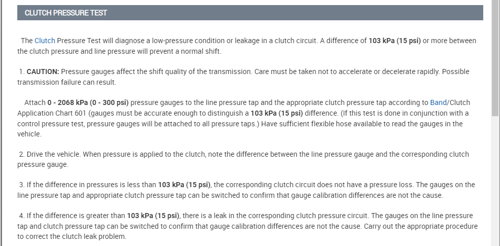 Lastly is a clutch pressure test. This is checking the actual seals in the clutches and bands to make sure they are okay.