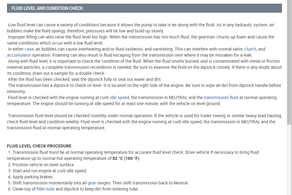 Okay. Yes, it needs to be hot or the reading will not be accurate. I have found on these trucks that if they are low they do not show it when cold just because the do a pretty good job of draining back to the pan.