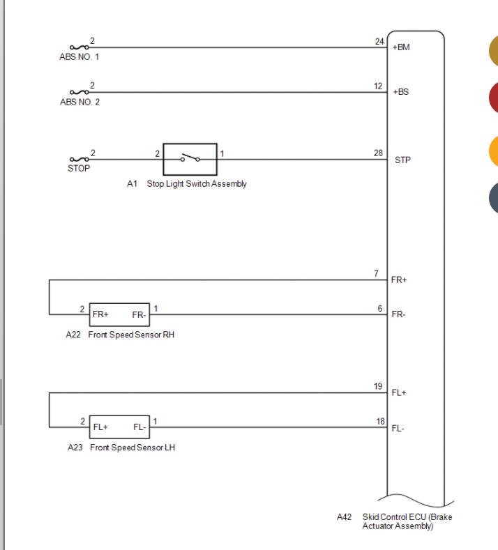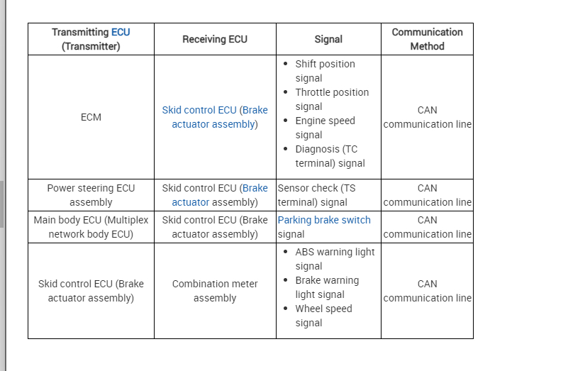 Basically, the signals are given directly to the ABS, then they are sent to the combination via this bus network, then the combination meter decodes this message and then codes it again to send it to the ECM where it is able to decode it as well.
