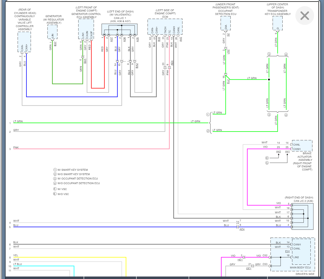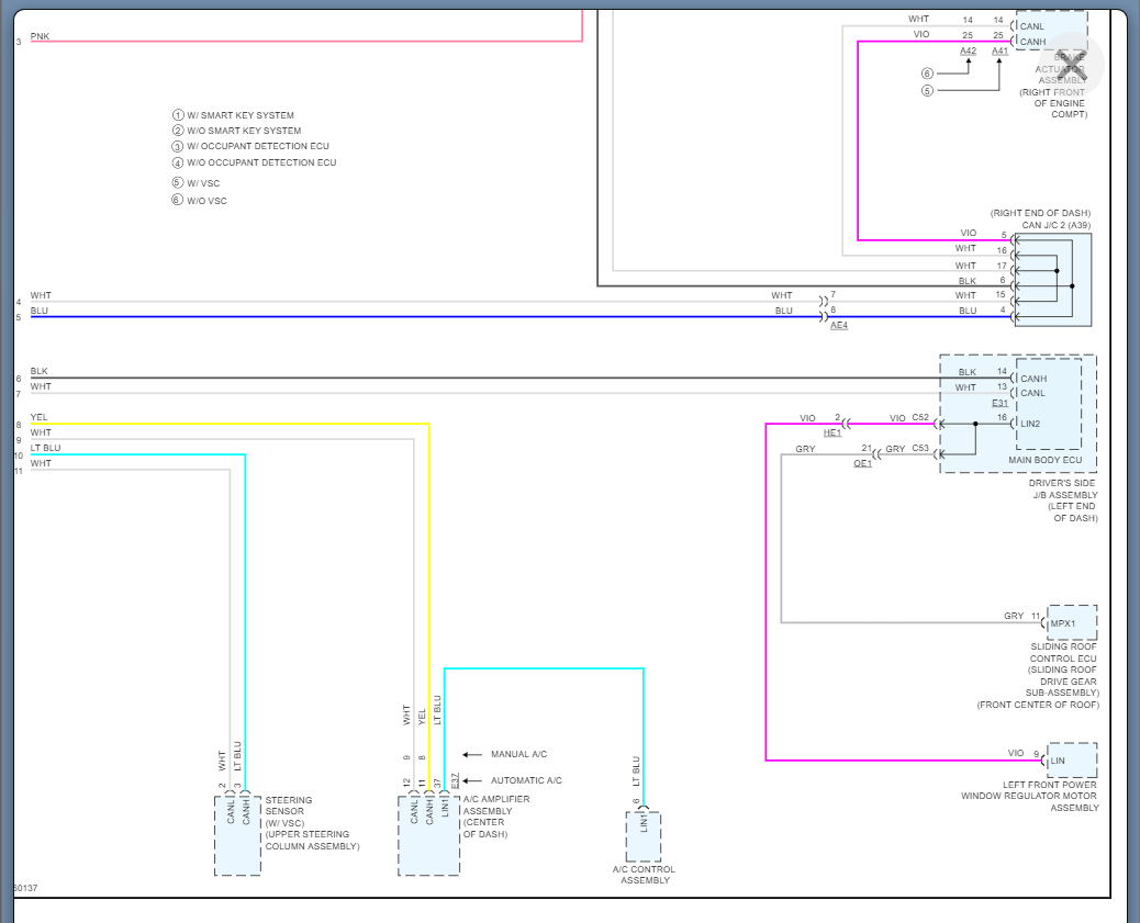 I am attaching the diagrams that are specific to this system. However, these signals are on what are called CAN communication networks.