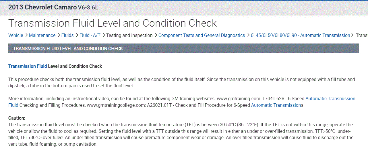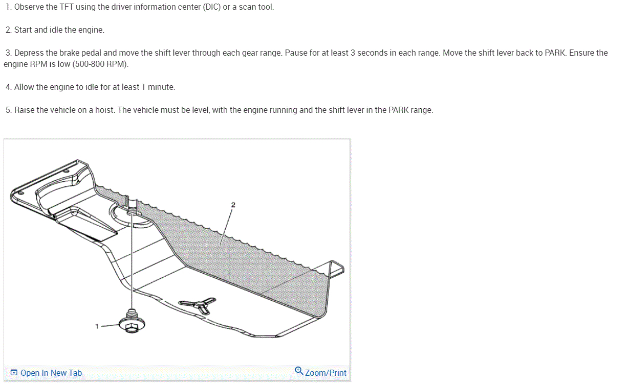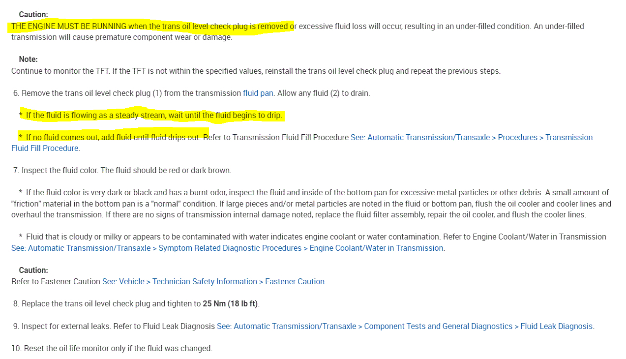 Note: The engine needs to be running and the transmission in Park. If the engine is off, you will lose most of the oil in the transmission when checking.