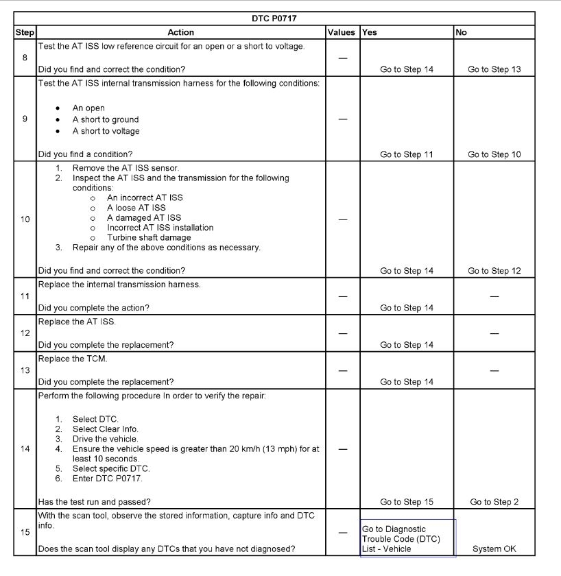 DTC P0717 Input Speed Sensor Circuit Low Voltage