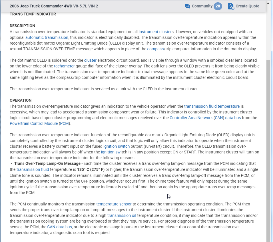 After reading similar issues, I understand this may be due to either the battery or starter wires and of course, a transmission temperature sensor issue? Thank you in advance.