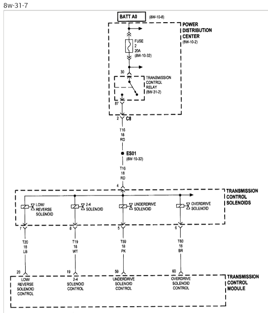 Recently removed transmission to repair front pump seal that was leaking after reinstalling check engine light came on giving a P0750 and P0755 code. Upon inspection shift solenoid was broken replaced unit with battery unhooked after installing new solenoid pack light stayed off for short time then came back on. Looking for wire diagram for PCM to do pin test to make sure there are no issues in wiring. Any help would be appreciated.