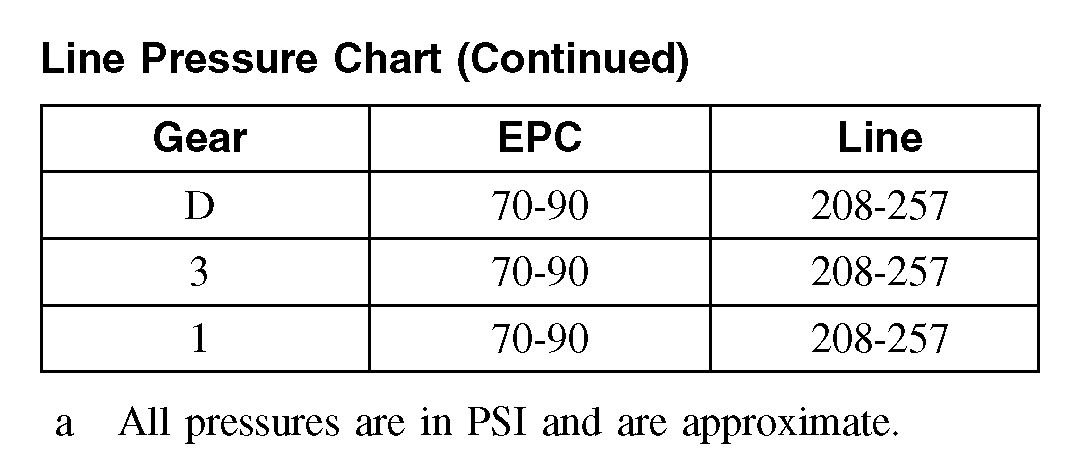 5. Start the engine and check the EPC pressure. Refer to the line pressure chart for specifications.