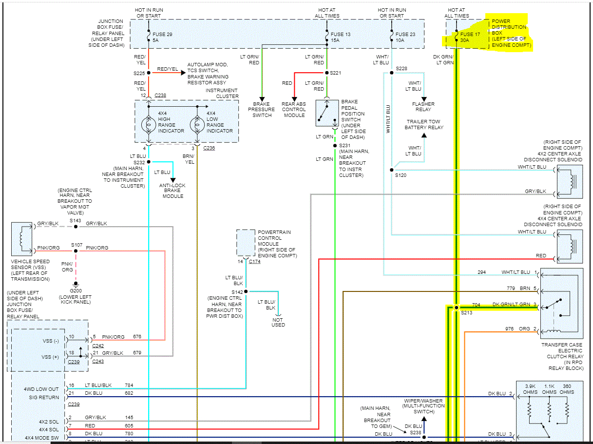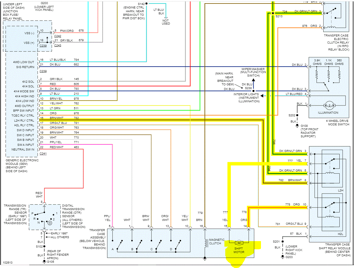 If that checks good, I need you to locate the shift motor on the transfer case. I attached a general pic of what it looks like. (see pic 3) Have a helper switch between 4wd and 2wd to see if there is power at either of the two wires (one yellow and one orange).