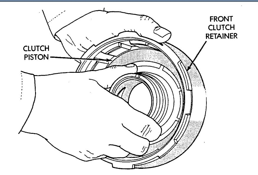 4. Install clutch piston in retainer. Use twisting motion to seat piston in bottom of retainer.