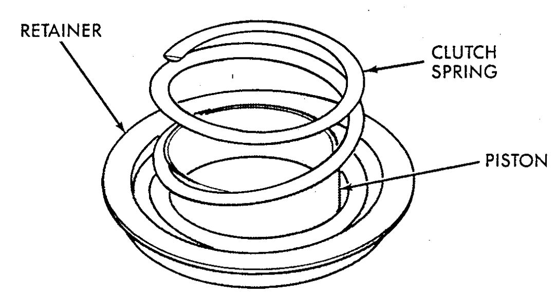 5. Remove clutch piston from clutch retainer. Remove piston by rotating it up and out of retainer.