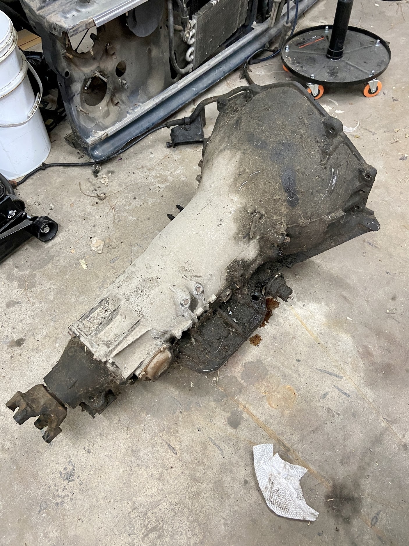 How much ground clearance is needed to remove the transmission? I'd like to remove it, bolt to my new engine, and then reinstall the whole package together.