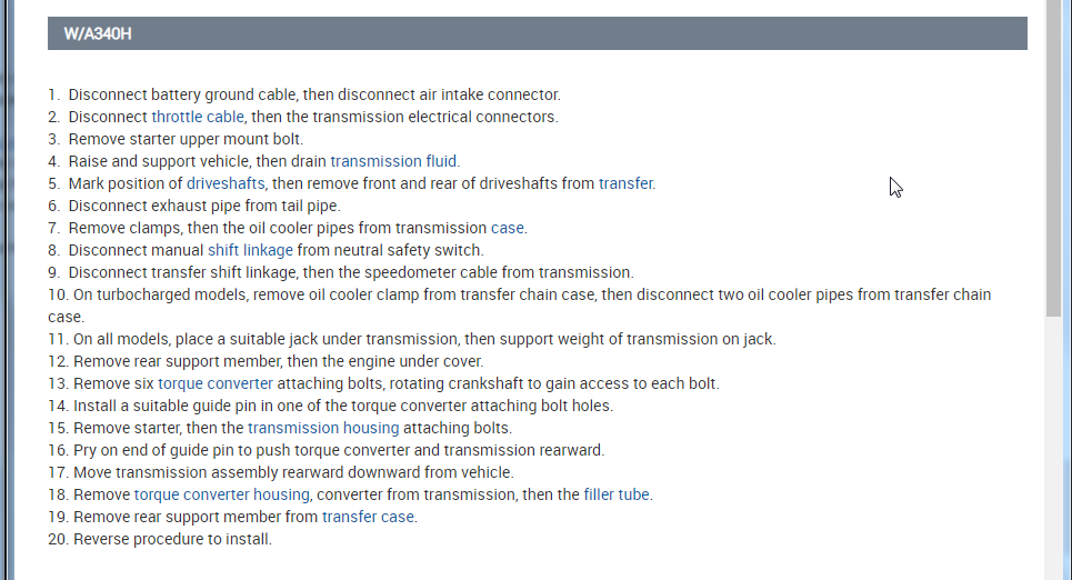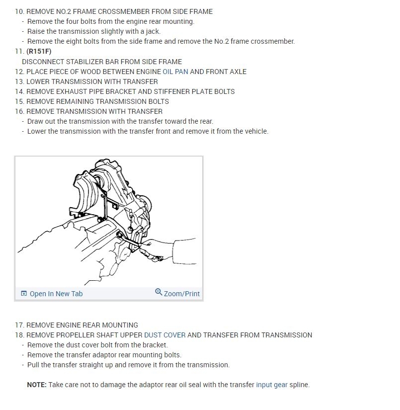 NOTE: For the transmission with a transfer (4WD) refer to REMOVAL OF TRANSFER.