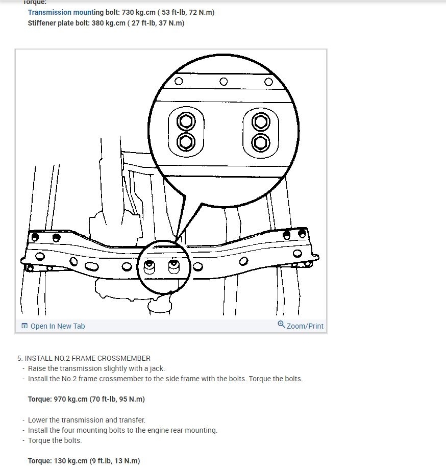 (c)Remove the four bolts from the support member and remove the rear mounting bracket.