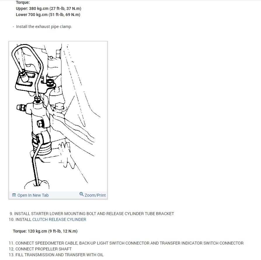 9. REMOVE CLUTCH RELEASE CYLINDER, TUBE BRACKET AND STARTER LOWER MOUNTING BOLT