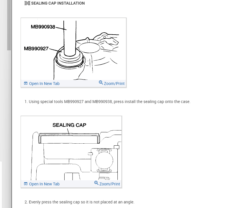 Unfortunately, there are no detailed instructions from the manual on just this installation as this is only part of the larger rebuild process. So, they just say to install the seal. However, the seal tool is shown and how to use it.