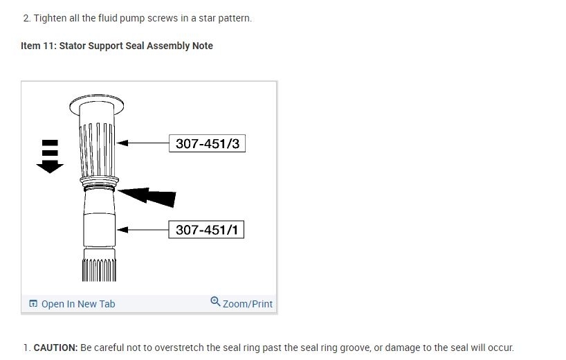 The front has 2 seals. One for the pump and one for the stator shaft. I attached the procedure for both for you below.