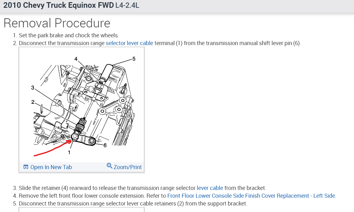 Okay, we need to check if the problem is internal to the transmission or the shifter, let's disconnect the transmission shift cable to see if you can move the shifter. This can help us tell which side the problem is on: