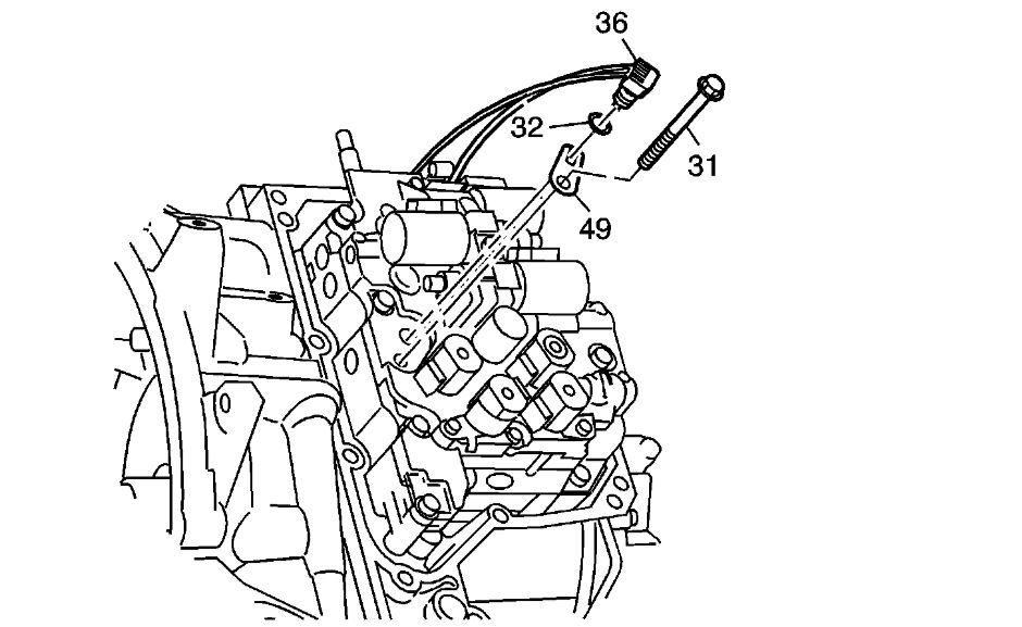 5. Remove the fluid temperature sensor (36) and the O-ring (32) from the control valve body.