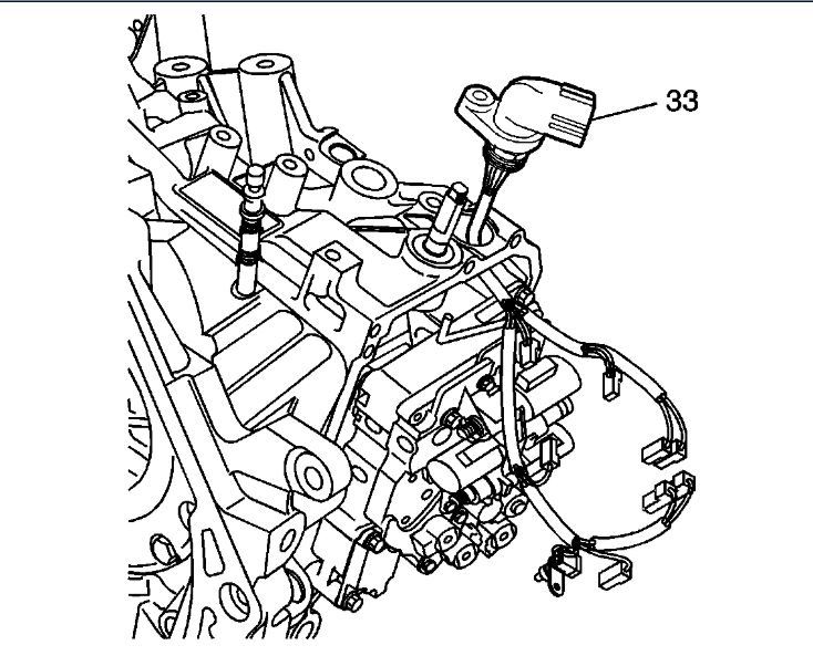 6. Remove the wiring harness (33) from the automatic transaxle wiring harness clip.