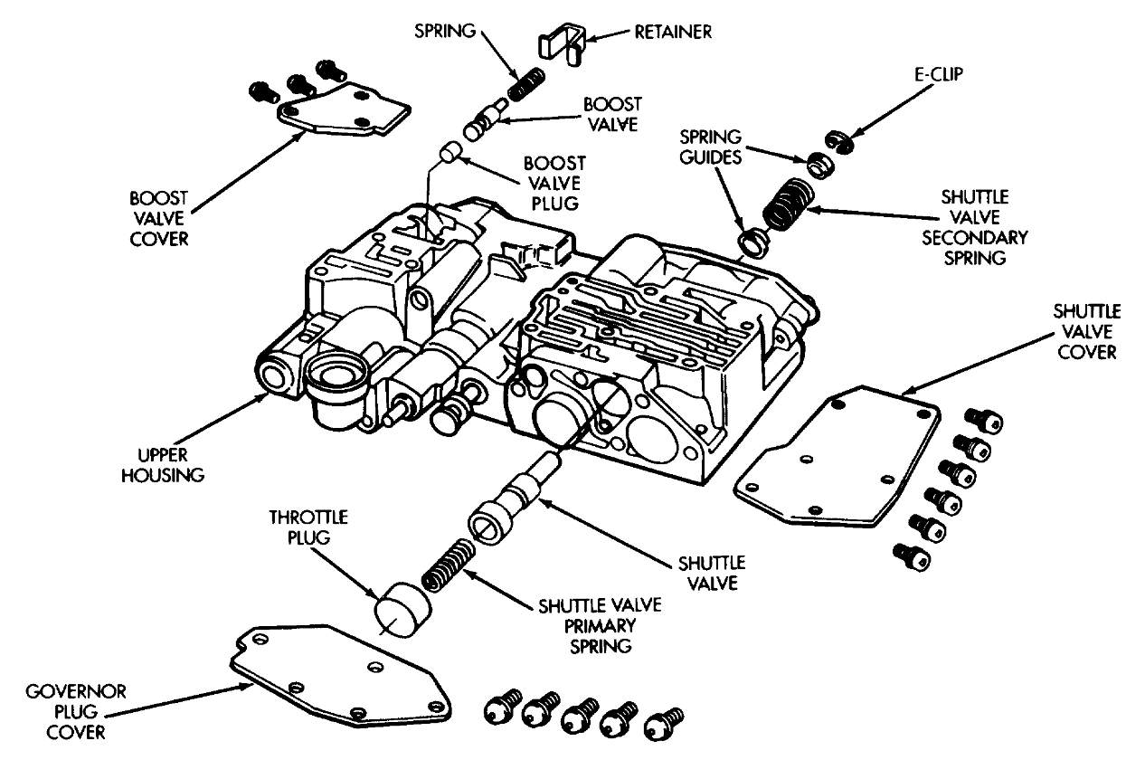 CAUTION: Do not force valves or plugs into place during reassembly. If the valve body bores, valves and plugs are free of distortion or burrs, the valve body components should all slide into place easily. In addition, do not overtighten the transfer plate and valve body screws during reassembly. Overtightening can distort the housings resulting in valve sticking, cross leakage and unsatisfactory operation. Tighten valve body screws to recommended torque only.
