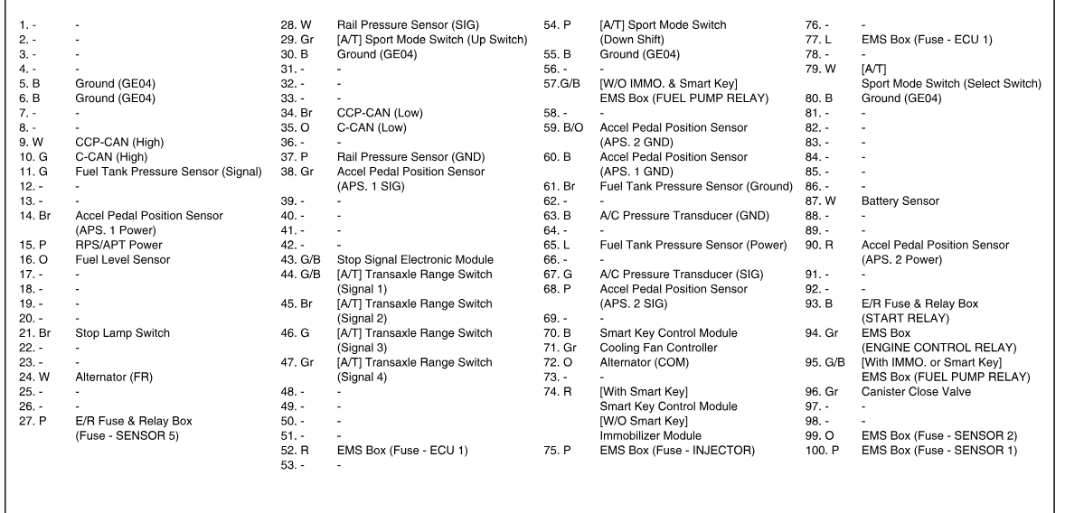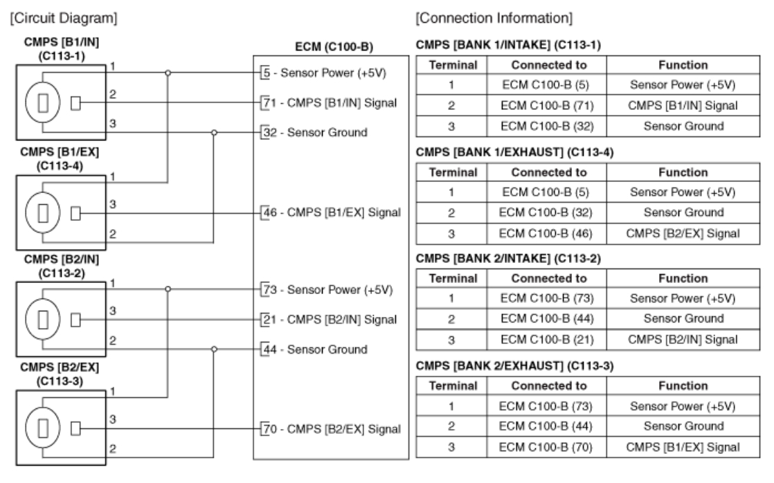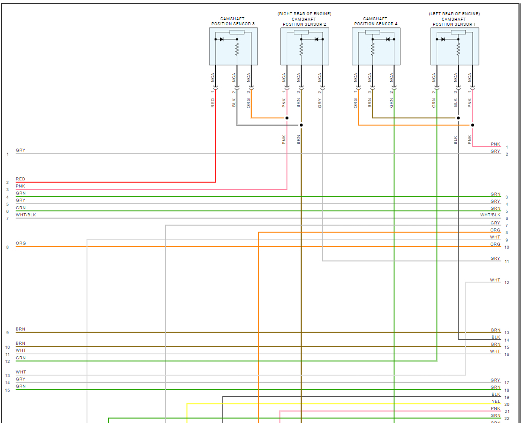 Except for the camshaft sensor on banm 2 which signals are. Pin 5.6 volts, Pin 2 no volts, pin 3 4.6volts, ignition on, but once the connector is fitted to the sensor, the pin 2 gets 4.5volts coming as signal to the ECU, with ignition on engine off.