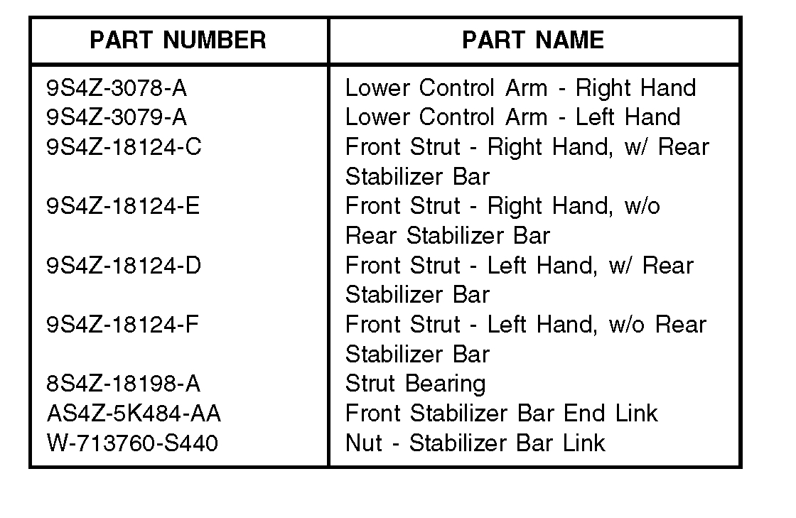 (1)Yes - remove and install four (4) revised stabilizer bar end link nuts per Workshop Manual (WSM), Section 204-01; torque to 46 lb-ft (63 N.M).