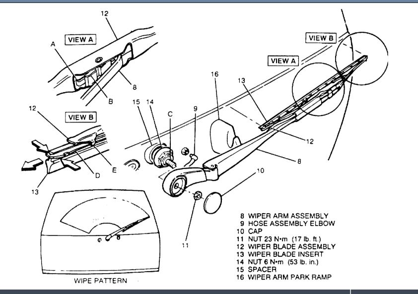 a. Put wiper arm assembly in park position, the remove hose assembly elbow from hose connector.