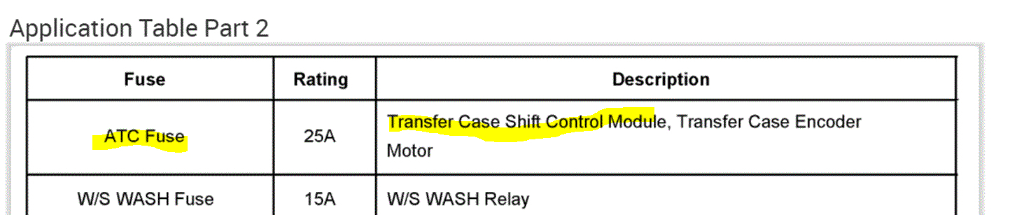 Pics 13 and 14 indicate the transfer-case shift control power supply fuse (under hood fuse box).