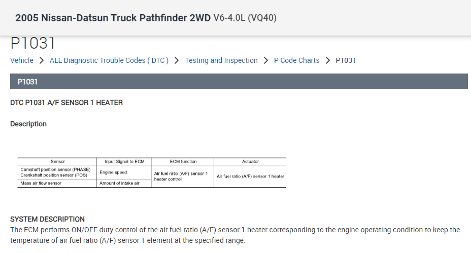 Could you have made a mistake on the P1030? It isn't listed in two manuals for this vehicle. Additionally, they are showing it as a 4.0L V6. Please confirm.