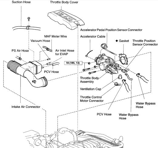 c. Check that the engine rotations decrease when the vacuum hose of the air control valve is pinched.