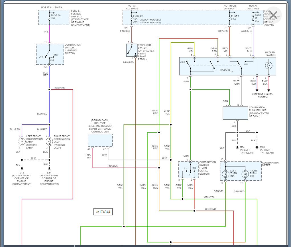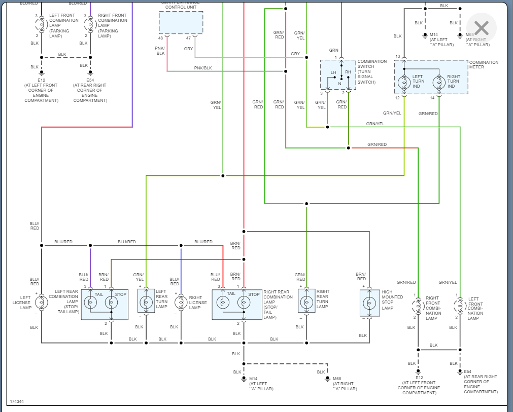 We should check the voltage at the lights and then track it backwards through the system to find where we have the voltage. Basically, if the switch has power coming out of it, then the switch is shorted.