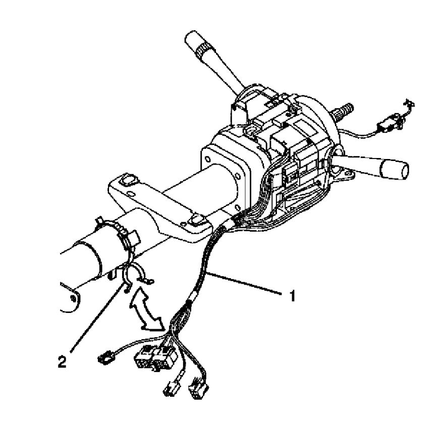 Replacement of the switch isn't super difficult but it requires a bit of care with the connectors as they are easy to damage. The first step would be to remove the battery ground cable. Then you remove the upper and lower trim covers from the steering column. With those off you can release the wiring harness connectors and retainer strap shown in the 2nd image. Next you carefully remove the alarm connector as shown in the 3rd image. Then you use either the special tool or a small screwdriver to release the retainer clips for the switch and slide the switch off.