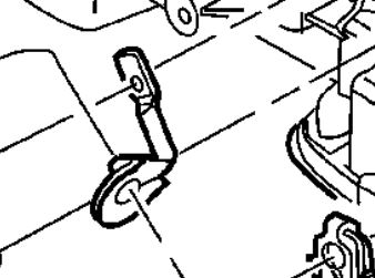 6. Route the gearshift cable through the transmission mounting bracket and secure the cable by snapping the cable retaining ears into the transmission bracket and snapping the cable eyelet on the manual shift lever ball stud.
