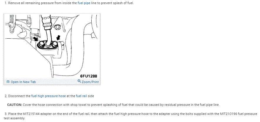 AllData's fuel pressure test procedure is included in the images below. While you won't have the exact tool that they call for, the rental tool will approximate it well enough for the test.
