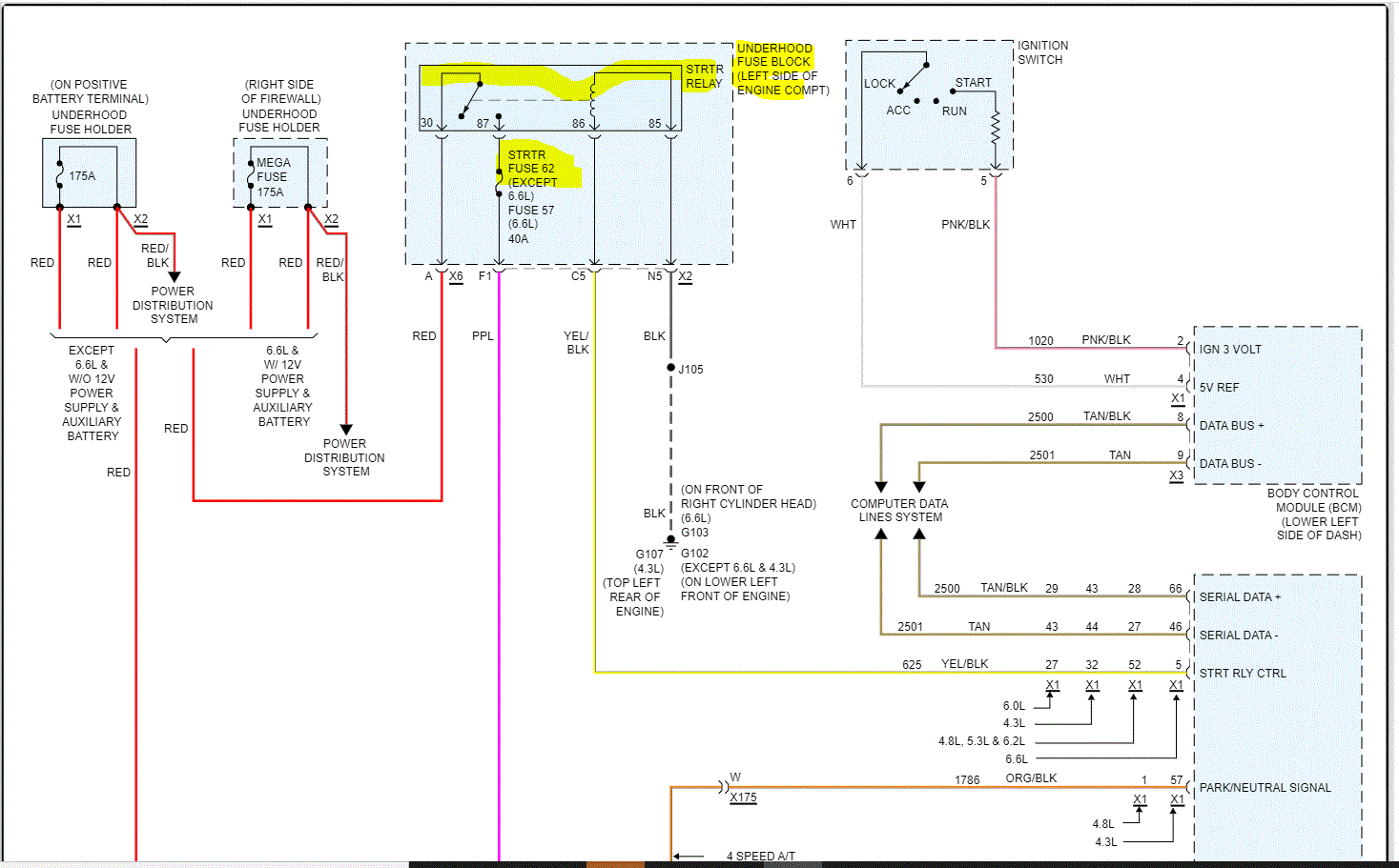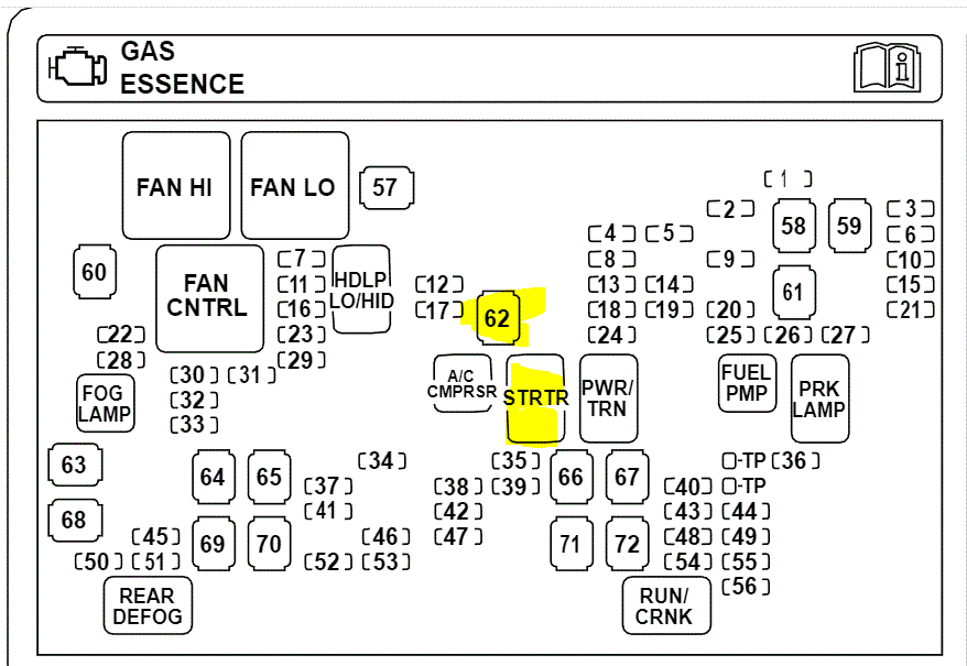 So, let's start at the beginning. First, I need you to check fuse 62 in the under-hood fuse box. That is a starter fuse that supplies power to the S terminal. When checking the fuse, confirm there is power to and from the fuse. Here is a link you may find helpful.
