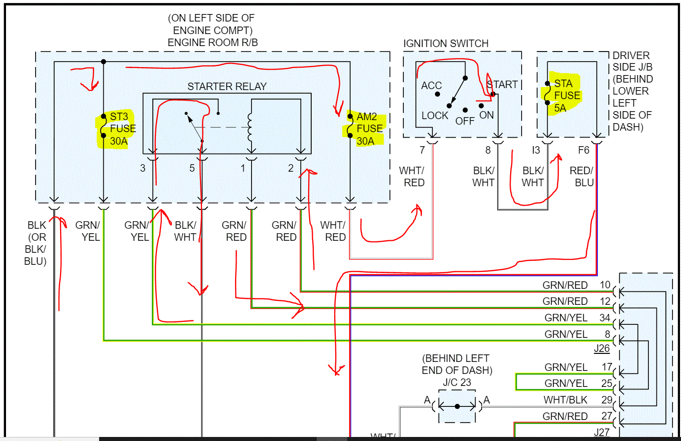 I know this sounds like a lot. Please let me know if you have questions. Also, remember the NSS was bypassed, so power should be sent to the primary side when the key is in the start position regardless of if it is in gear.