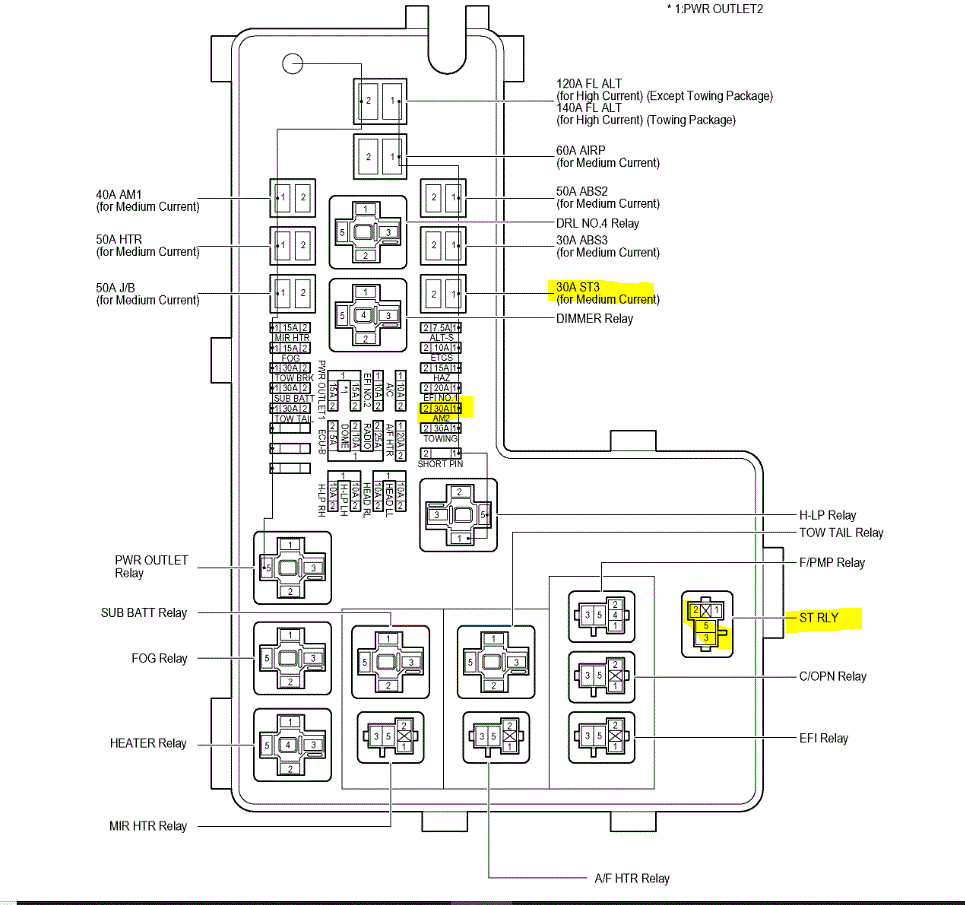 Straight from the battery, the ST3 and AM2 fuses in the under-hood fuse box receive power. Check them first. Make sure they have power to and from.