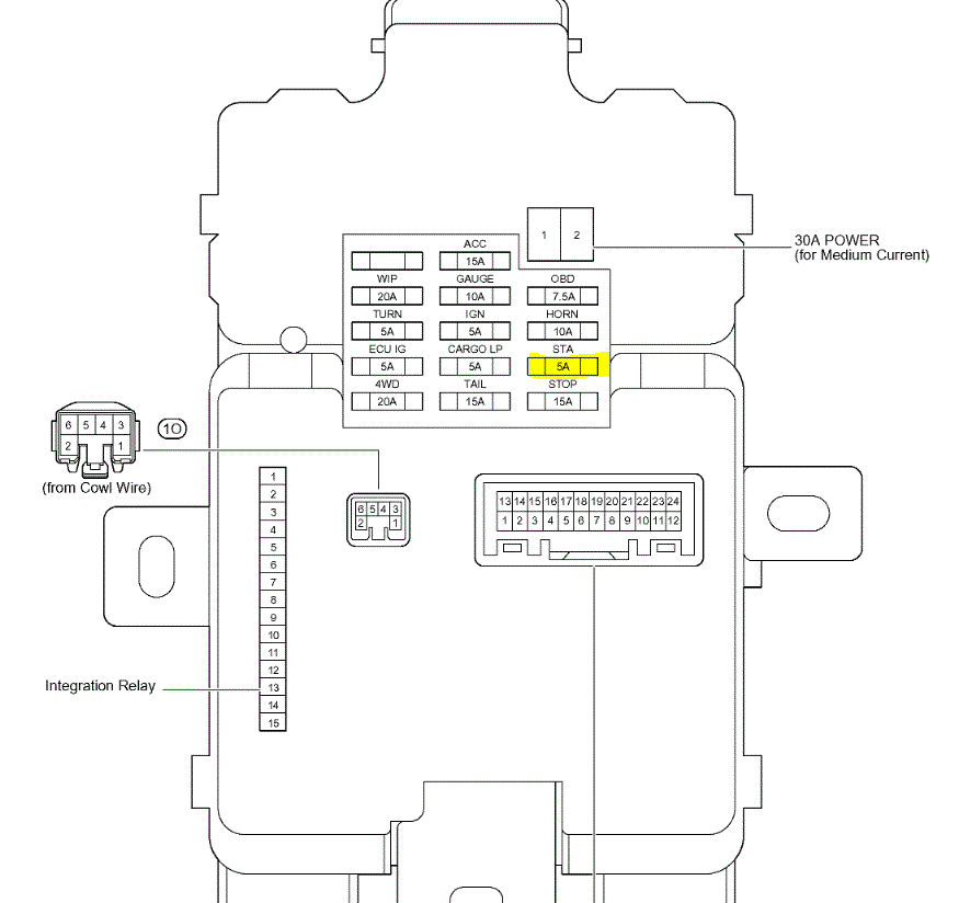 Note that the STA fuse will only have power when the key is in the start position. If it does, then remove the starter relay in the under-hood fuse box.