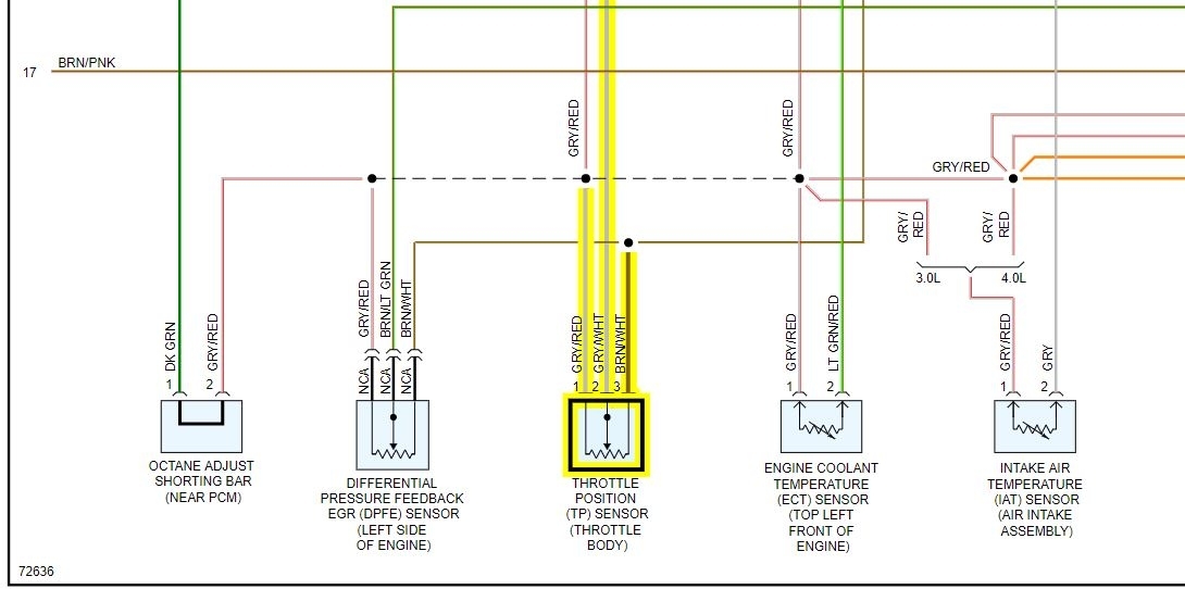 For example: EEC-IV, OBD I Codes 122 and 123 and EEC-V, OBD II Codes P0122 and P0123 for "TP circuit too low" or "TP circuit too high", limit the condition to the TP circuit, connector, or vehicle harness.