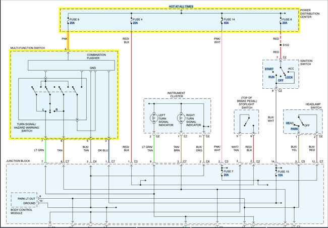 After testing the switch if that is ok the next step will be to check connections and the power in and out of the junction block (attached to the BCM, body control module)