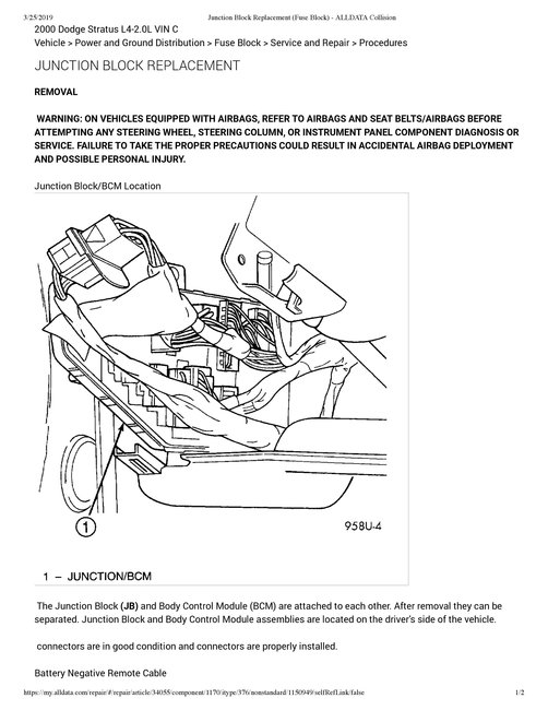 I have attached all the connector diagrams for the Junction block and the location and removal instructions.