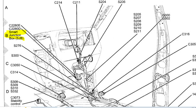 If you look below, I attached a picture showing the SJB location. It is located on the passenger side under the dash. Pic 2 is a front view of the SJB.