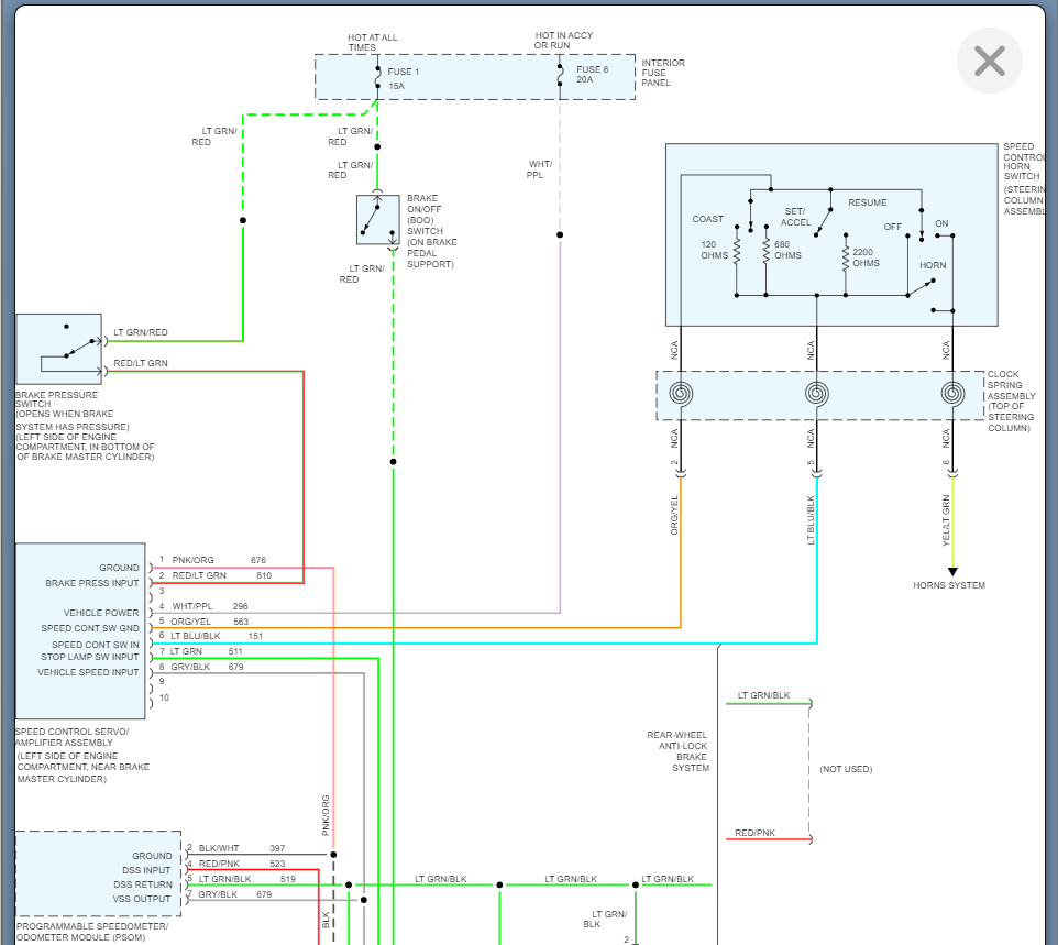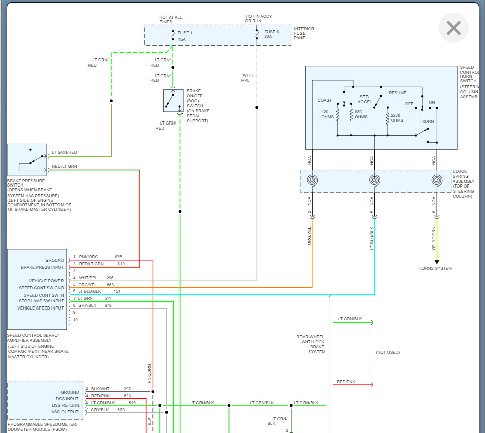 I am attaching the wiring below. We need to start with this and see if we are getting any voltage at all. If not, then the clock spring may be the issue so let's start with this and go from there.
