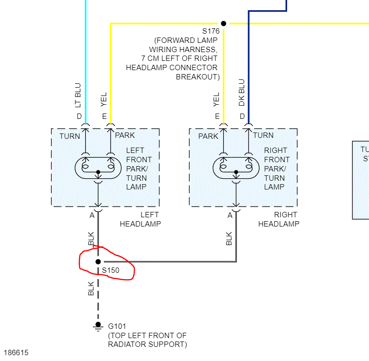 4. Replaced corroded ring terminal attaching 2 ground wires to upper left radiator support. (G101, if I understand correctly.)