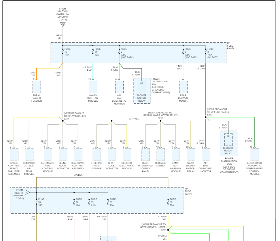 At first, I realized the turn signals didn't work. No lights on the dash, no clicking, nothing. Checked fuses and they are fine. I continued driving the vehicle and realized there were more items that stopped working. Cruise controls no longer worked (it did prior to flashers going out), 4-wheel drive no longer works, center overhead display in-top, and door chimes when vehicle is running, and door is open. Thinking this is an electrical problem that talked to all of these components but unsure where to start. Again, all of these items worked prior to the turn signals going out.