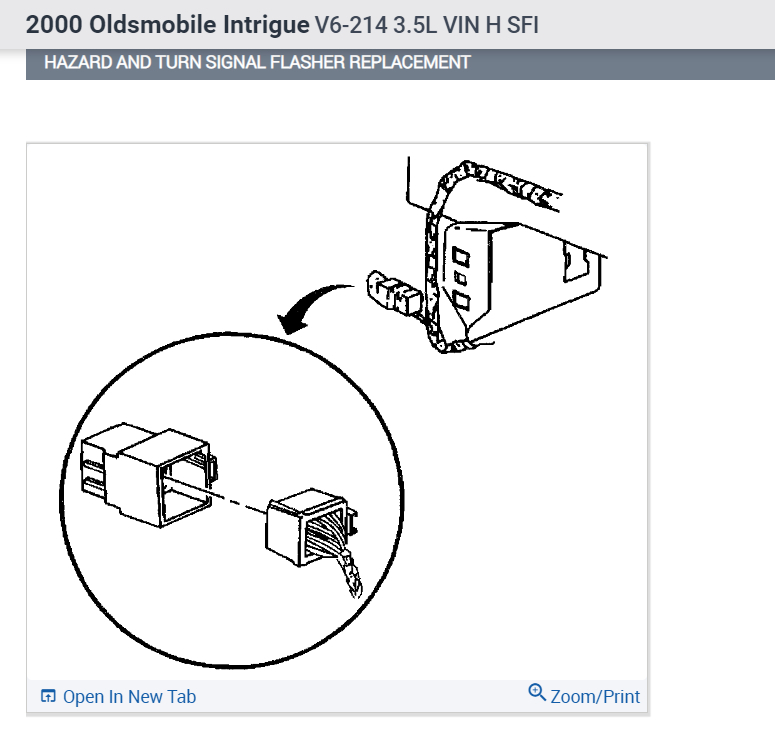 4. Disconnect the electrical connector from the hazard and turn signal flasher.