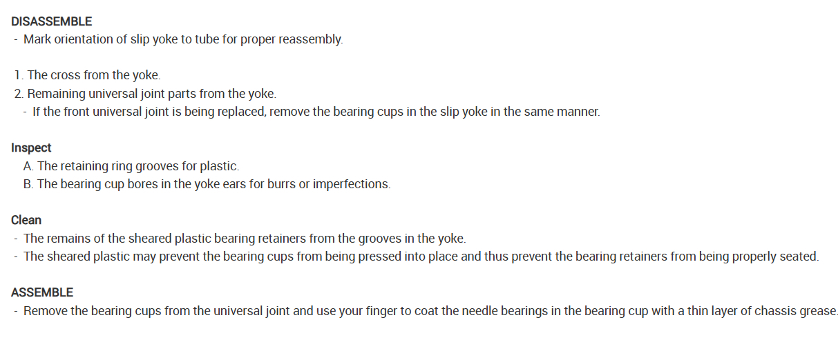 Can you upload a short video of the moment? Some movement is normal, can I ask of the rear end howls while driving? Here is a guide to help you change the U joints out:
