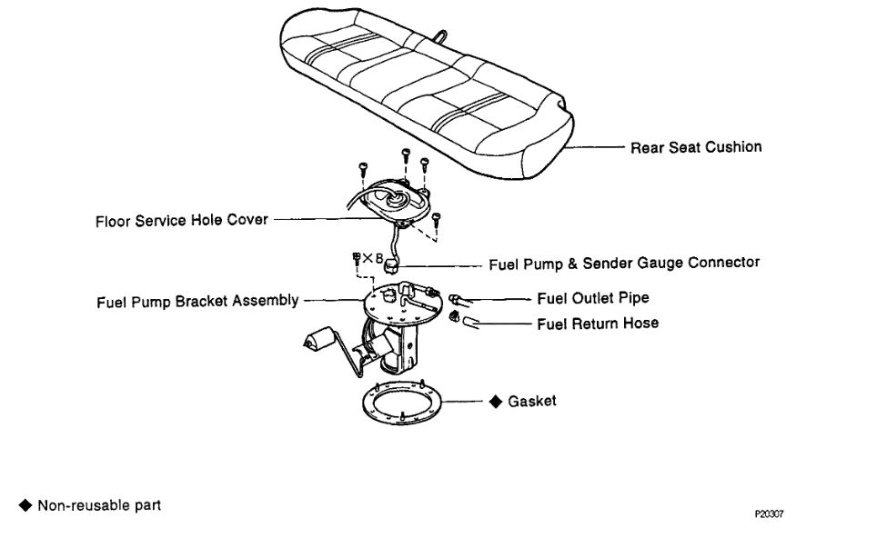 Key ON, engine OFF, FP - B+ jumped. 265 - 304 kPa (38 - 44 psi)