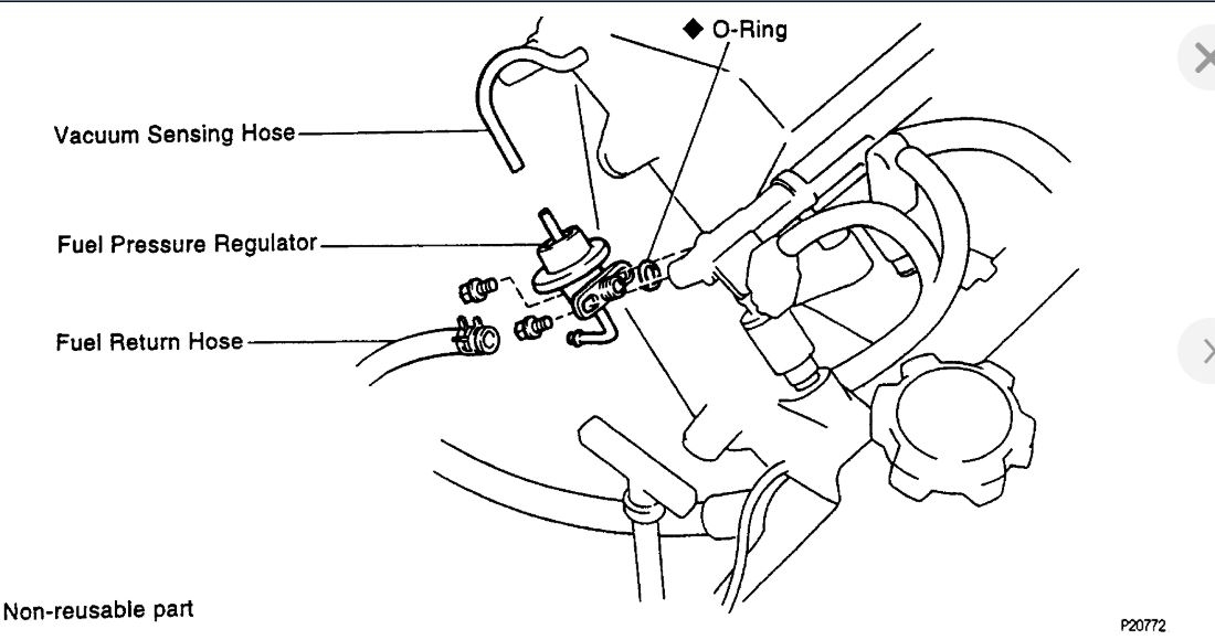 At idle, vacuum hose disconnected. 265 - 304 kPa (38 - 44 psi)