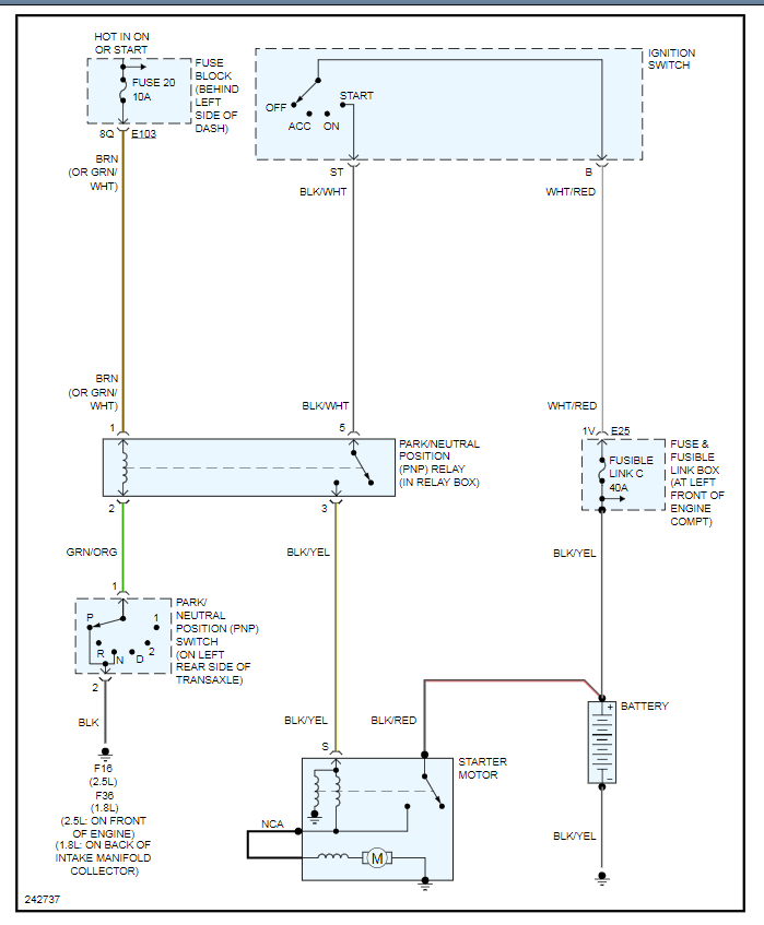 So the way to figure this out, is to check power at terminal 3 of the starter relay and at terminal 5 of the relay. If you have no power at terminal 3 then you have a short between the relay and starter on that wire.